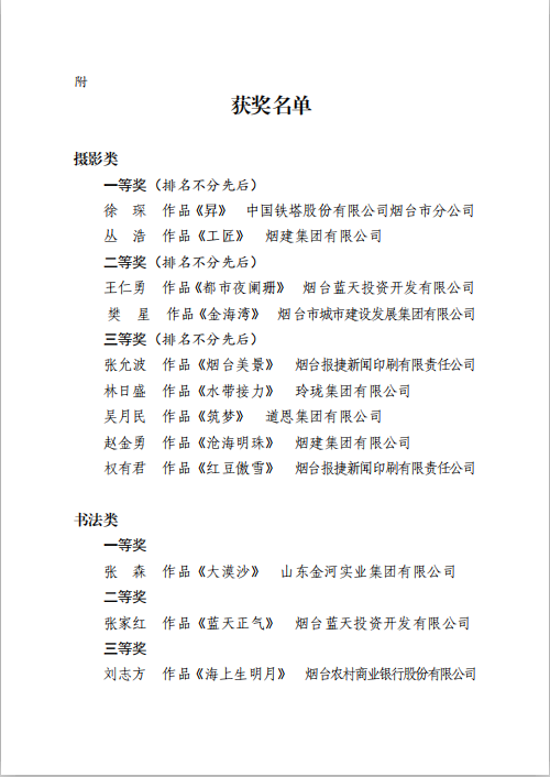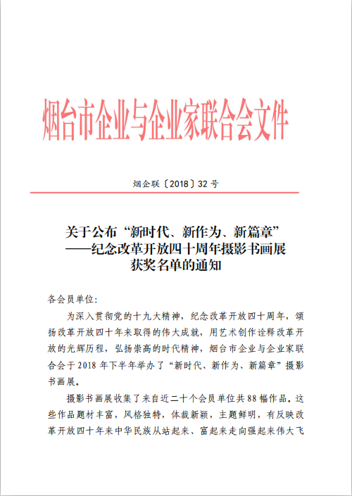 “新时代、新作为、新篇章”——纪念改革开放四十周年摄影书画展获奖名单